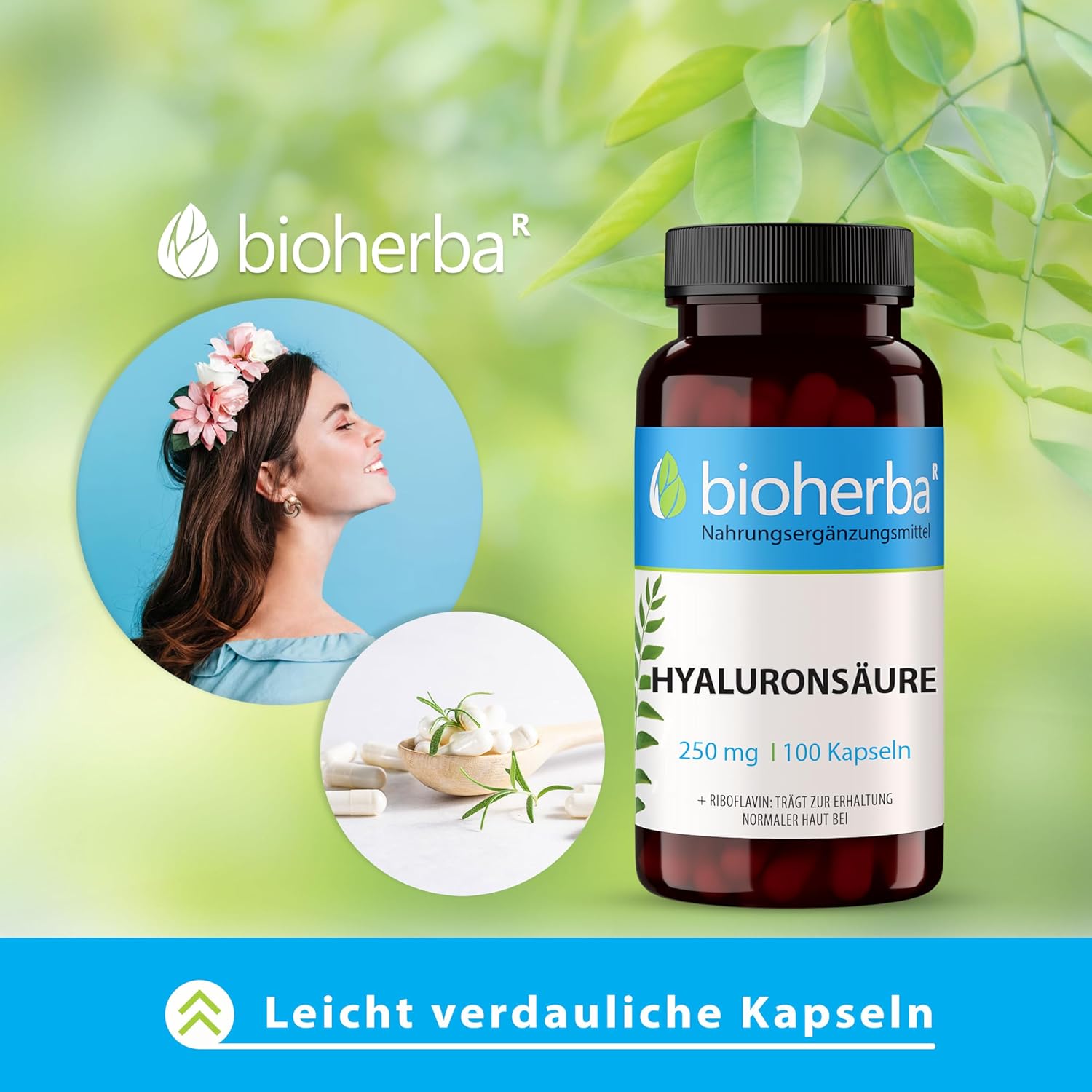 BIOHERBA PZN 17190849 Hyaluron Capsules – Pack of 200 with 250 mg Hyaluronic Acid and Vitamin B2 – Hochdosiertes Magnesium 250 mg