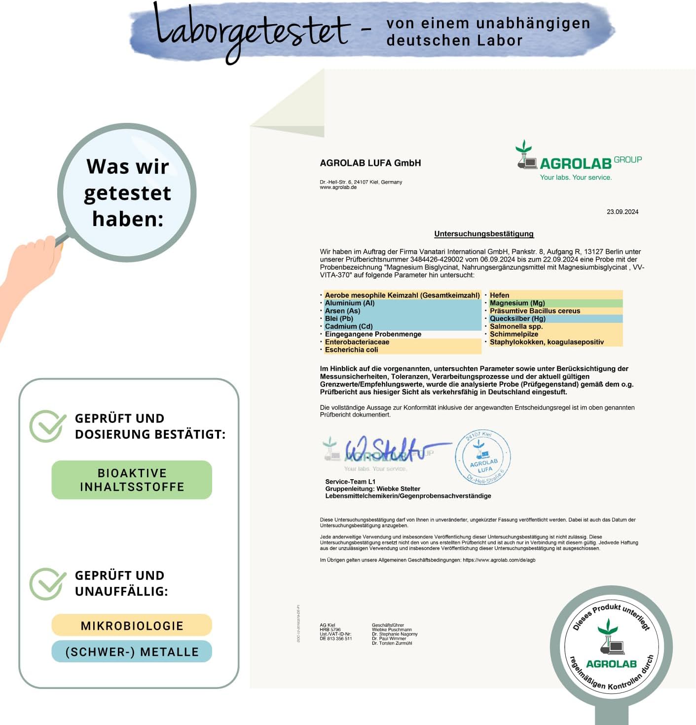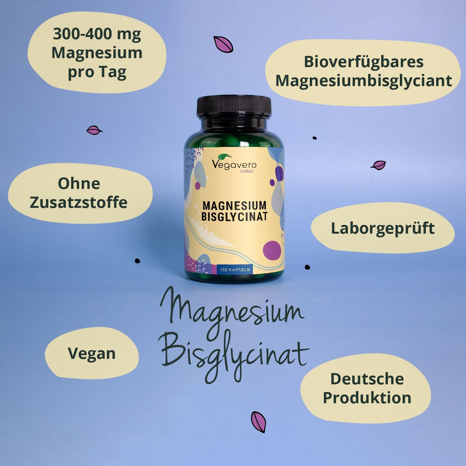 Magnesium Bisglycinate Capsules High Dose 400 mg Elementary Magn. per Day Against Fatigue Laboratory Tested & Vegan No Fillers and Additives German Production Vegavero® – Hochdosiertes Magnesium 250 mg