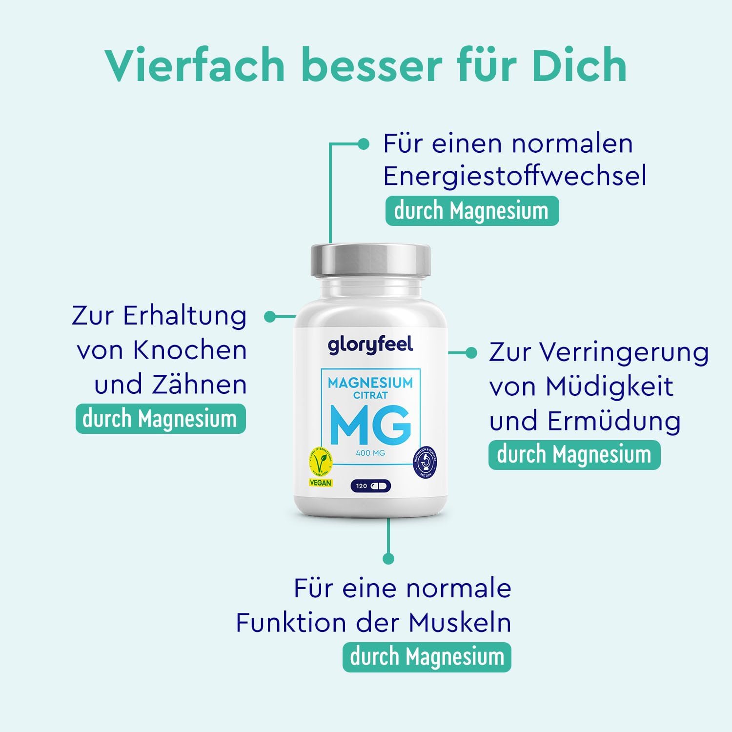 ✔ Dosierung: 250 mg Magnesium pro Portion