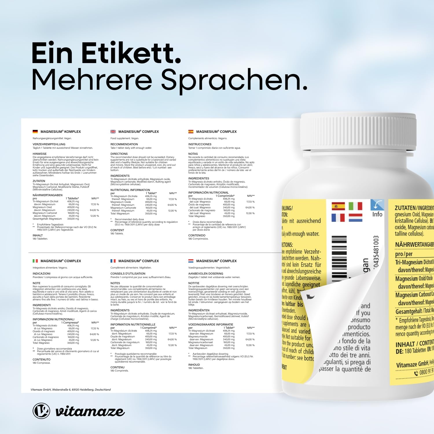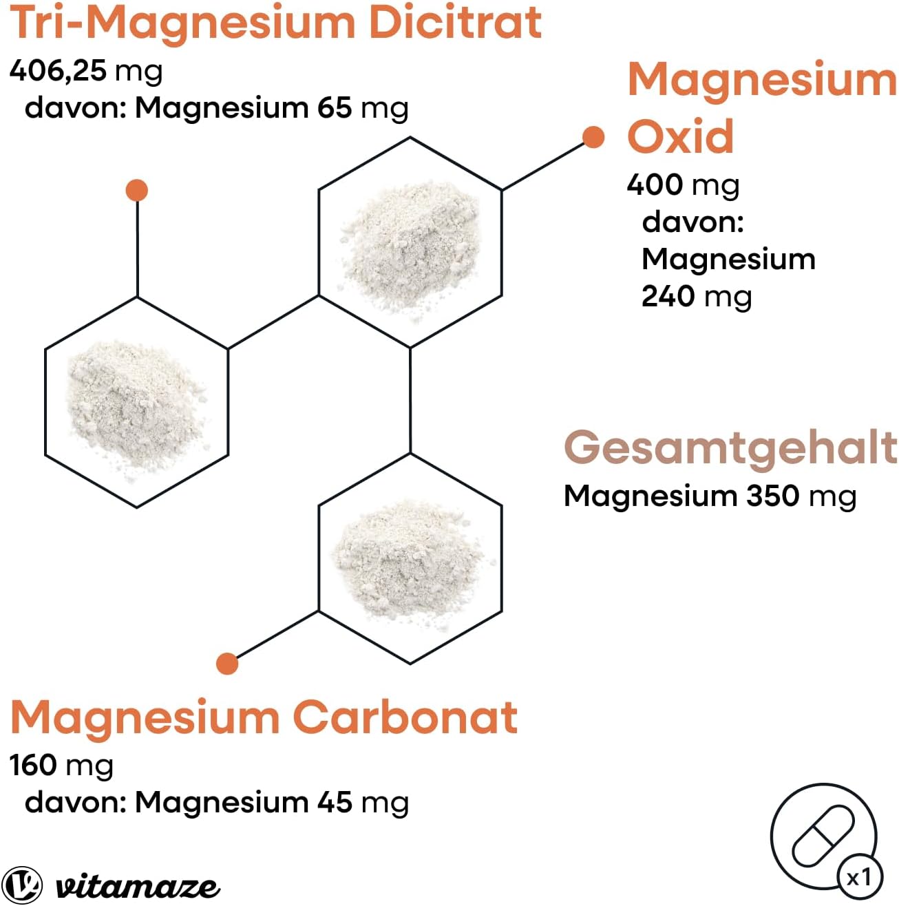 Magnesium complex high-dosed, 350 mg elemental magnesium with 24h depot effect, 180 tablets vegan, magnesium citrate carbonate oxide without additives, Made in Germany – Hochdosiertes Magnesium 250 mg