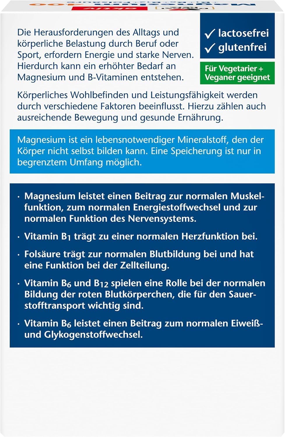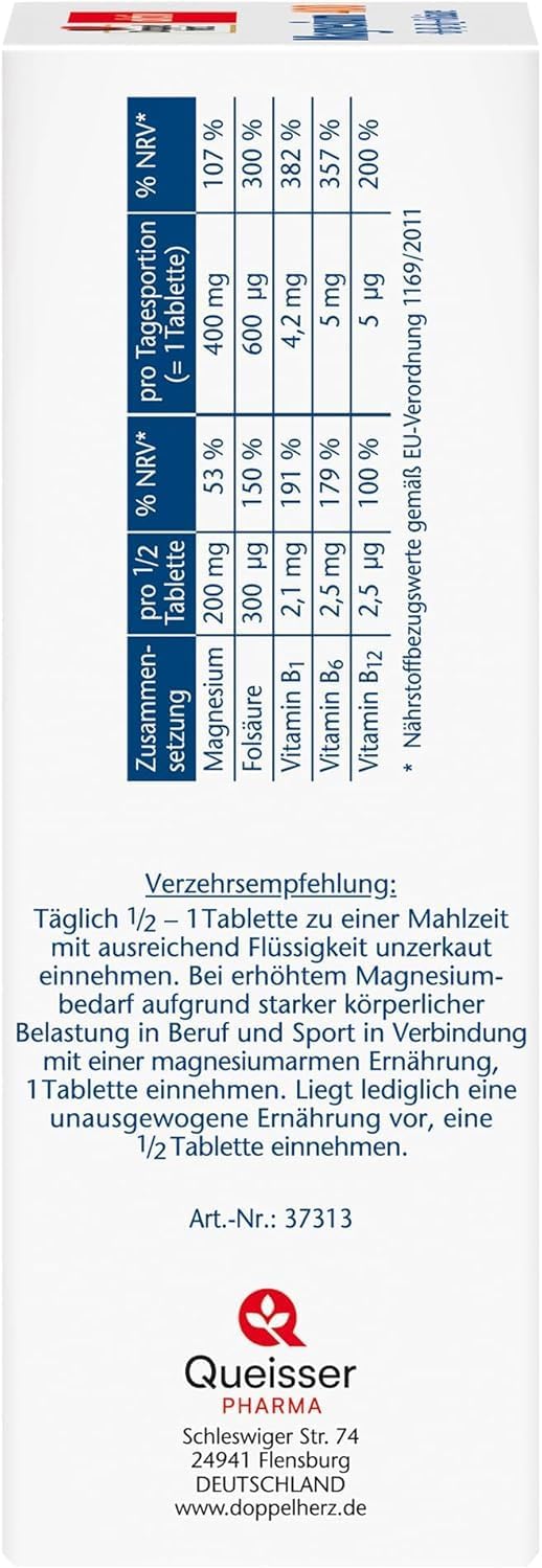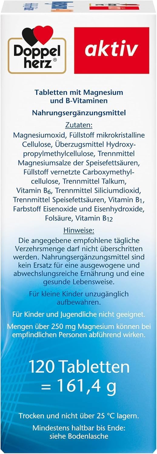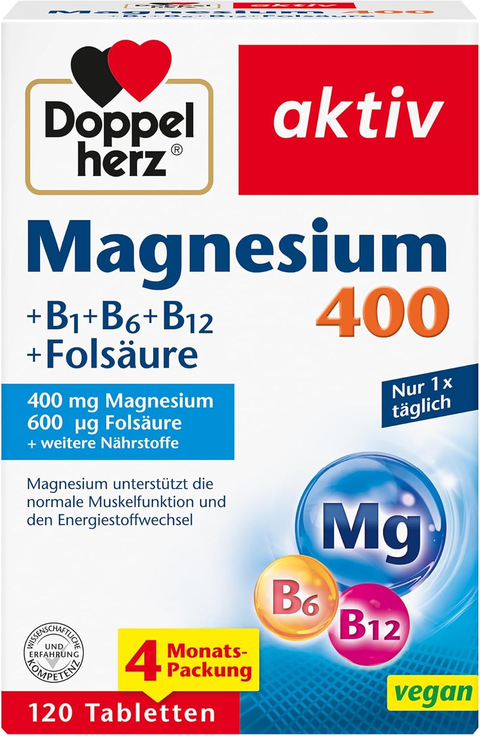 Doppelherz Magnesium 400 + B1 + B6 + B12 + Folic Acid, Magnesium Supports Normal Muscle Function and Energy Metabolism, 120 Vegan Tablets
