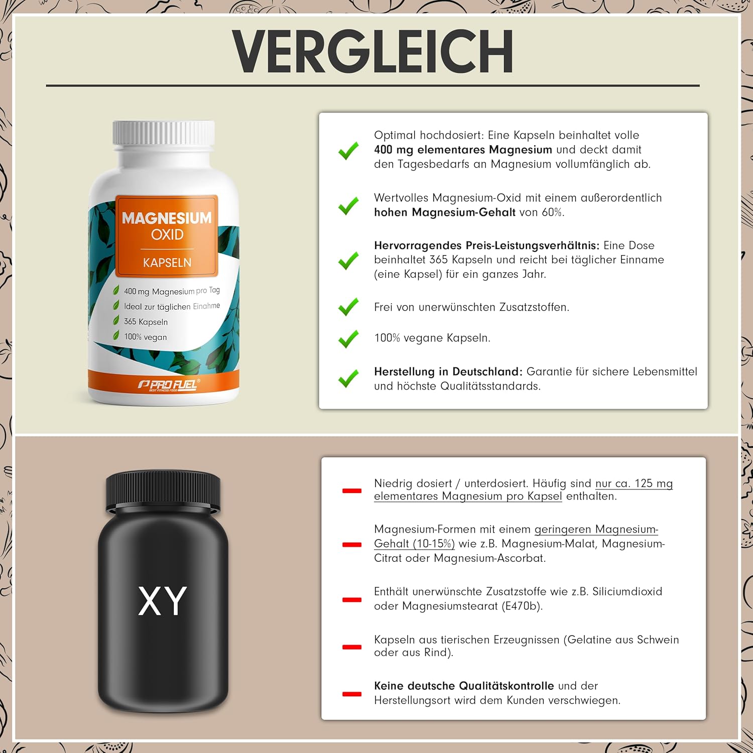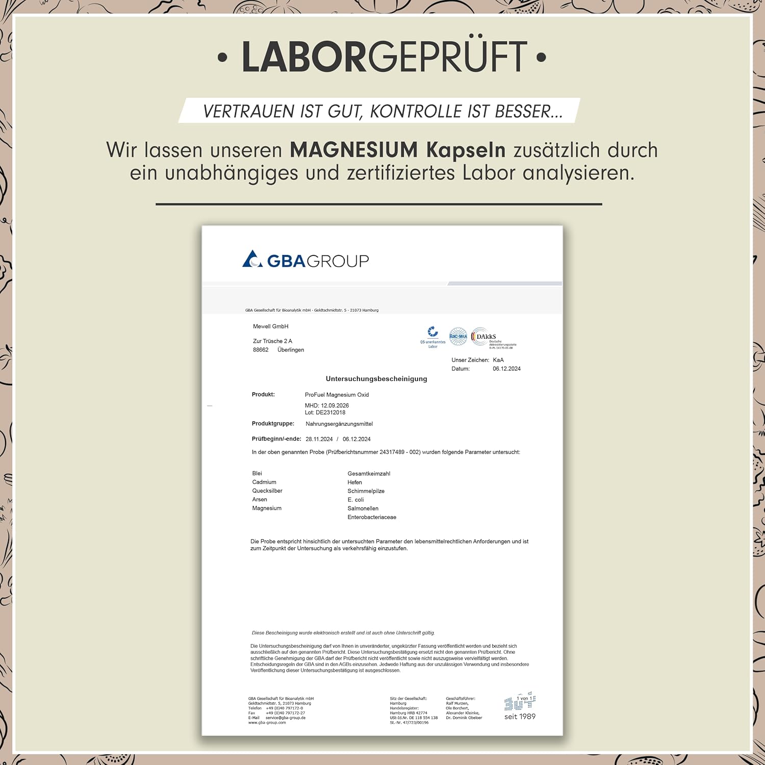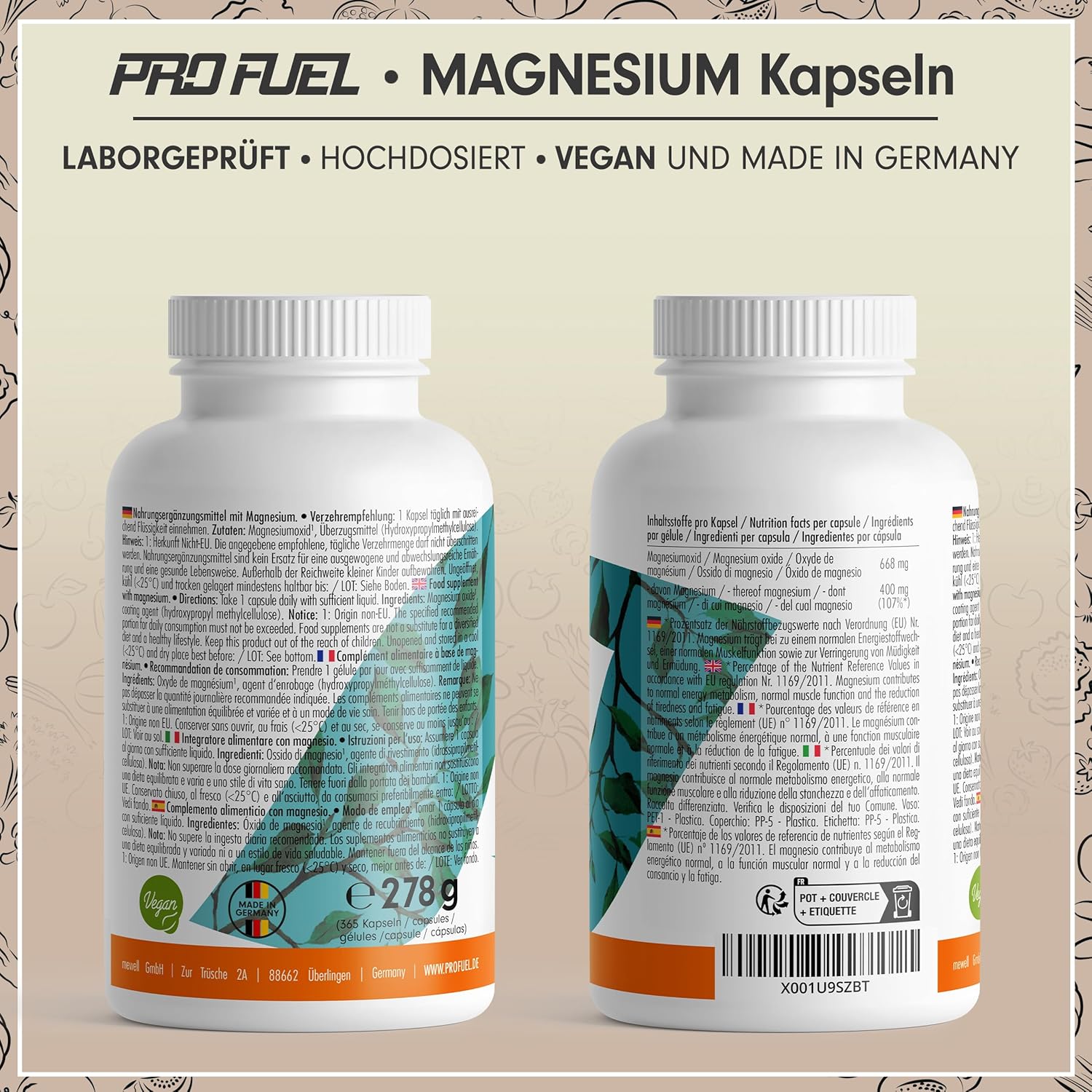 Magnesium Capsules 365 x 668 mg Magnesium Oxide, 400 mg Magnesium per Capsule, Very High Magnesium Content (60%), Laboratory Tested with Certificate, 100% Vegan, Supply for a Full Year