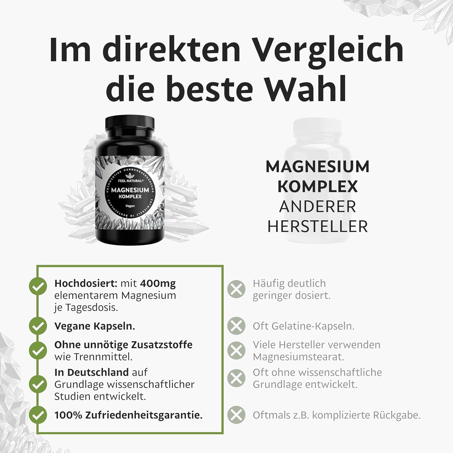 - 💚 Bioverfügbar: Gut verwertbare Formen wie Magnesiumcitrat oder -bisglycinat