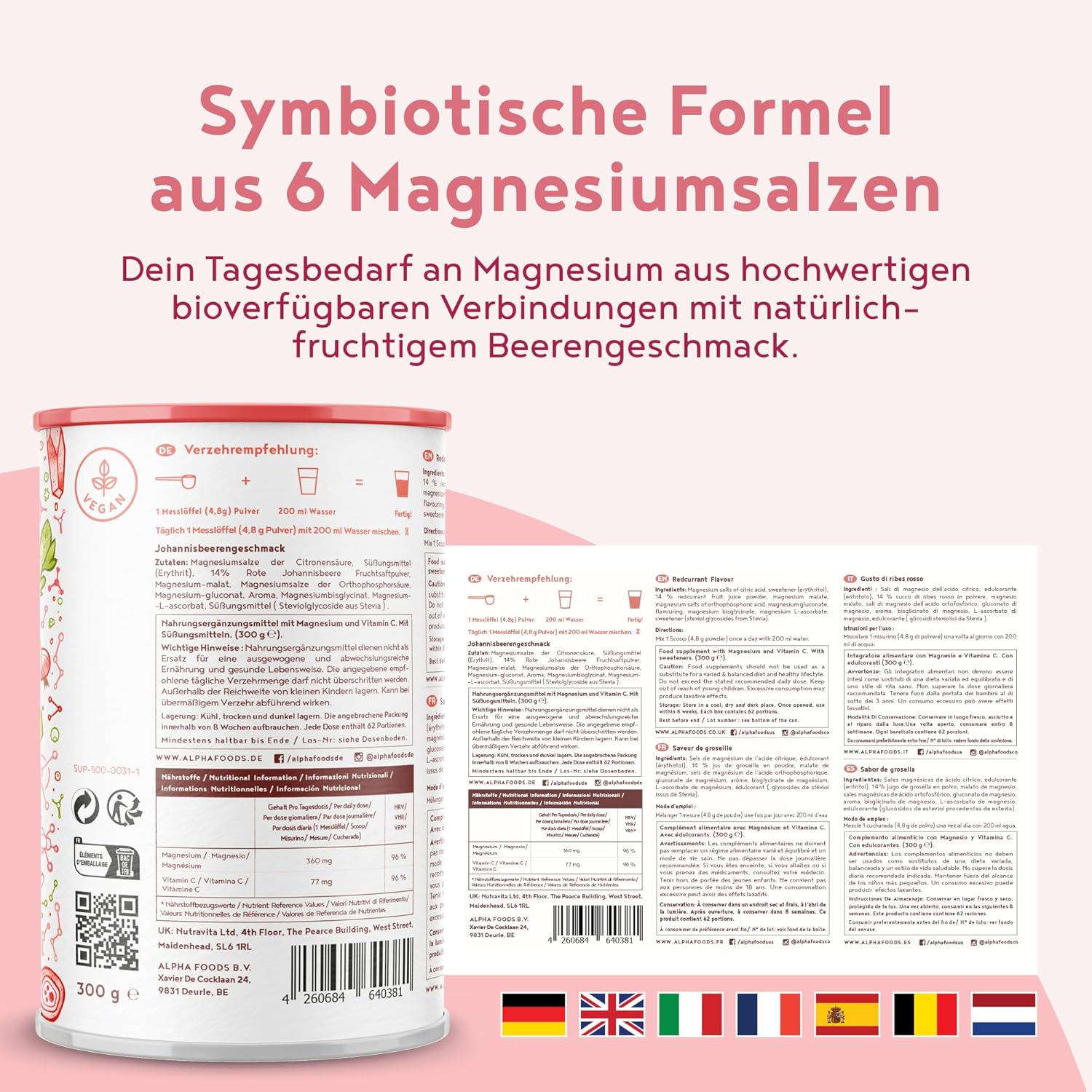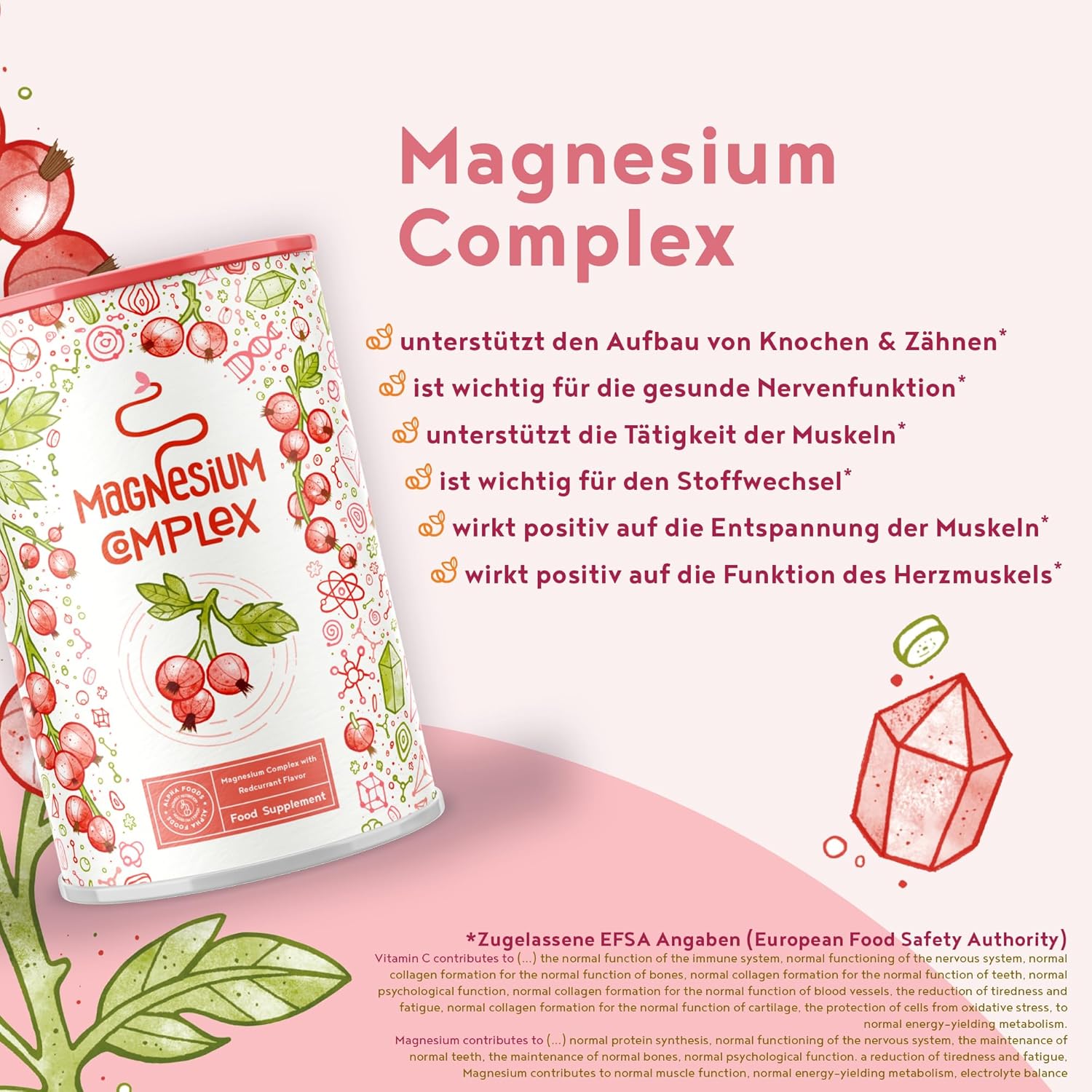 Magnesium Complex – Magnesium Powder with 6 Bioavailable Magnesium Compounds and Currant Flavour – Vegan to Support Muscles, Nerves, Electrolyte Balance – 300 g