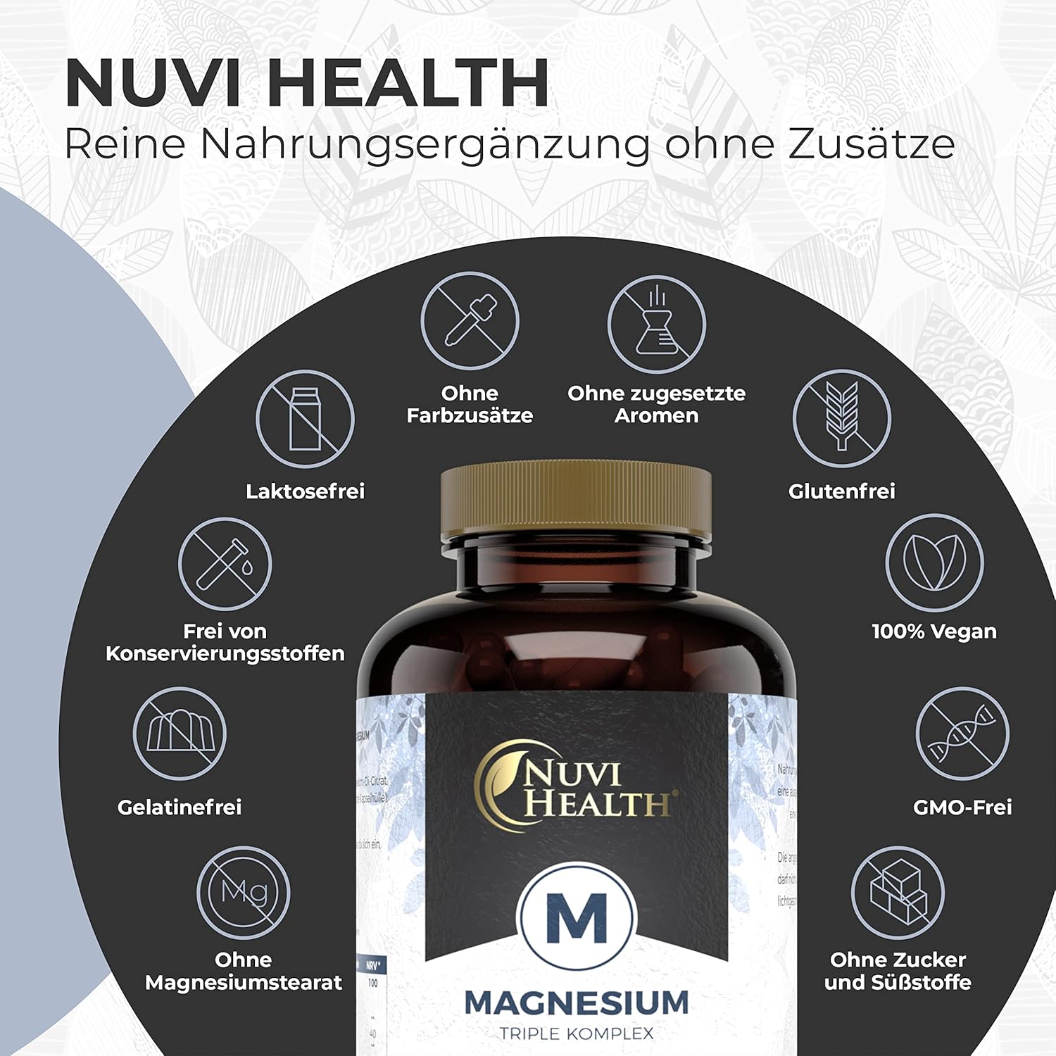 Nuvi Health Magnesium Complex – 240 Capsules – 375 mg Elementary Magnesium per Daily Dose – Magnesium Bisglycinate, Magnesium Citrate, Magnesium Malate – Vegan – High Dose – Laboratory Tested