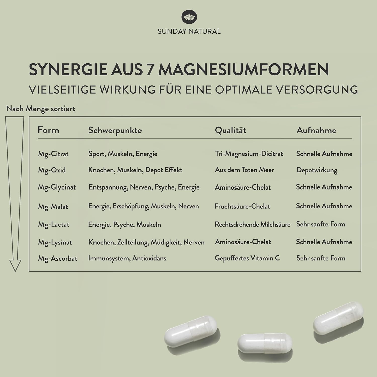 - 💚 Bioverfügbar: Gut verwertbare Formen wie Magnesiumcitrat oder -bisglycinat