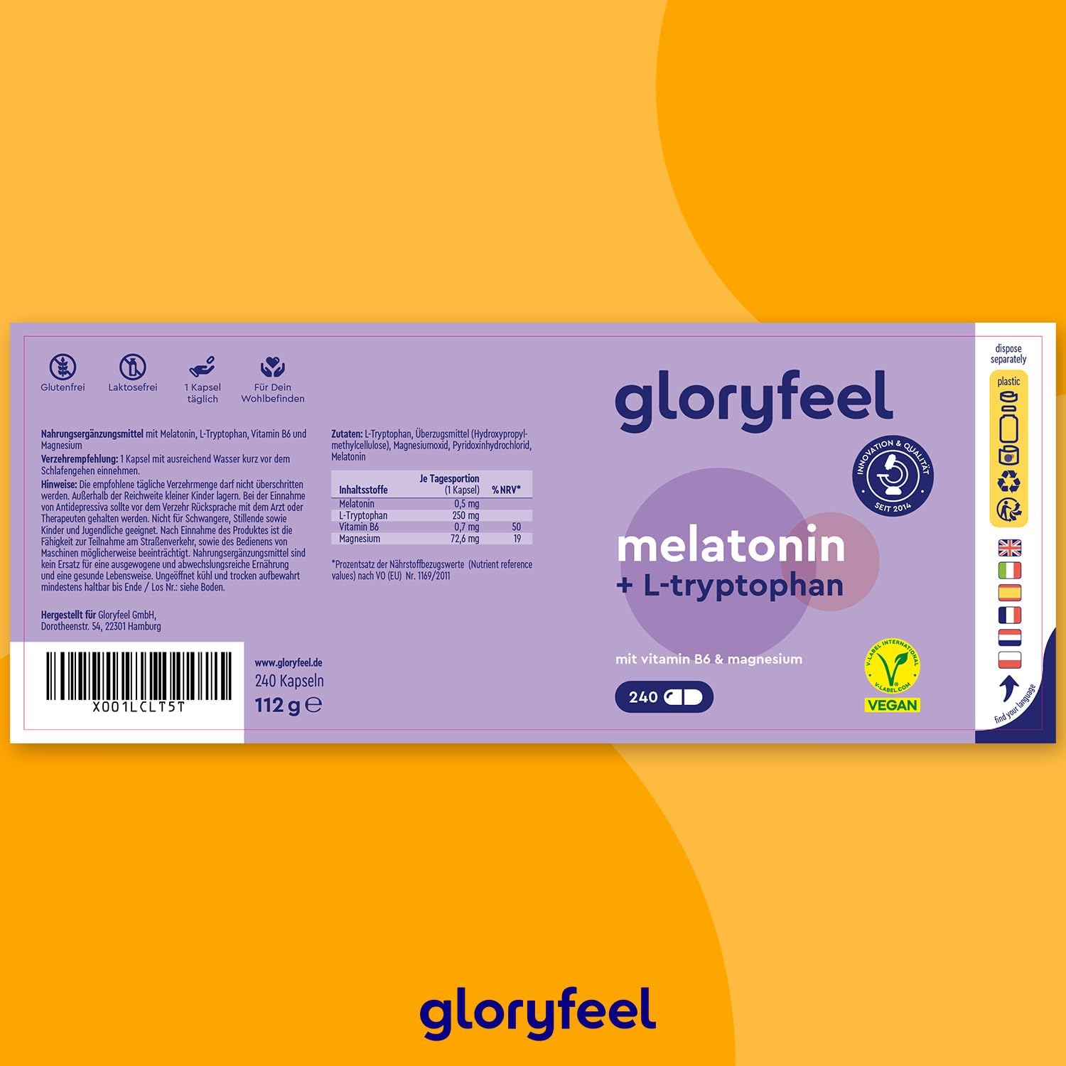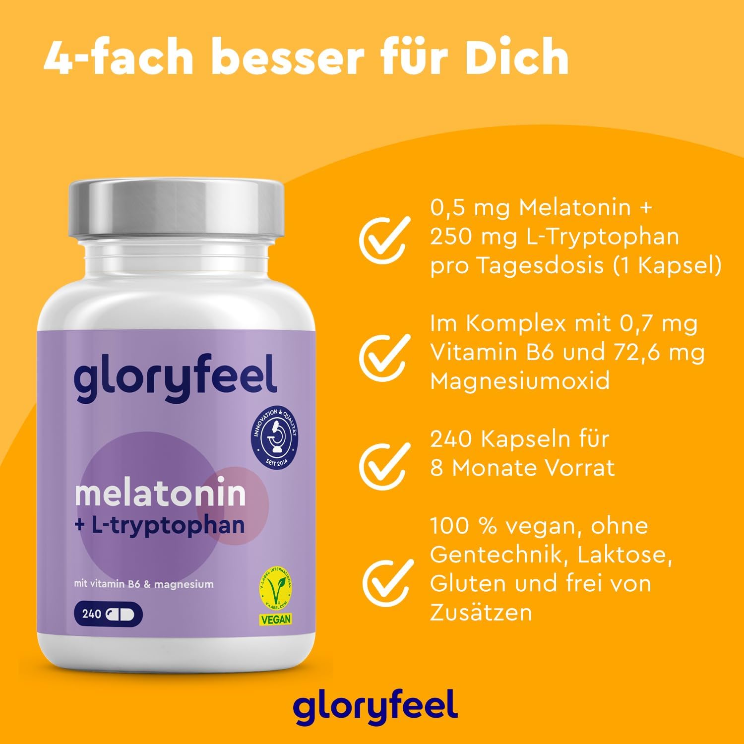 Melatonin Complex – With L-Tryptophan, Vitamin B6 & Magnesium – 240 Capsules High Dose in 4-Way Complex – 100% Vegan, Laboratory Tested and Made in Germany without Unwanted Additives